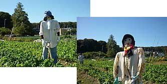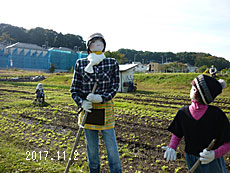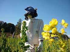 ![]() ・・・・菜の花畑にて ・・・・・ 出迎えは 4人の案山子 里の秋 (藤沢)