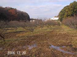 ![]() 水がはけず枯れ始めた梅林 |
