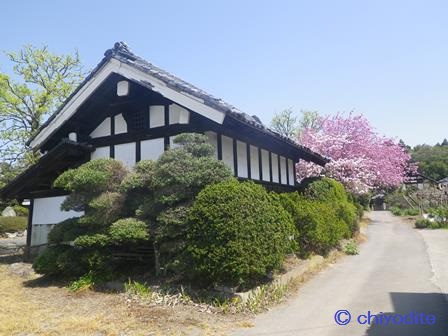 Photo above: Japanese house in traditional style in Hitachiota City, and beautifull blossoms of Yaezakura; a kind of double-petalled cherry tree. Photo on April 26, 2015