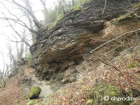図9 源三窟に向かう坂の途中に見られる石灰岩露頭