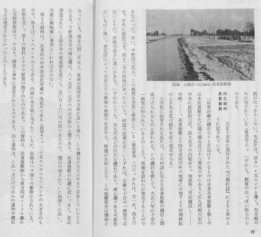 今般の村誌は、前記二編を、新たに得た資料によって加除修正をほどこしたものである。 〇「新井市史 上巻」新井市史編修委員会、1973 より p.98〜99 新井市史・旧三郷村長者屋敷