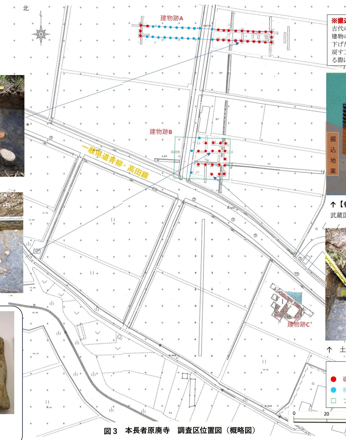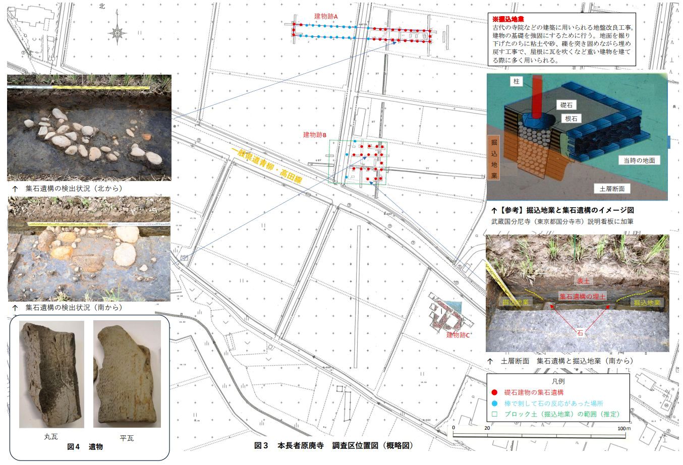 同市本長者原廃寺調査検討会委員の青木敬國學院大教授は「特定できる文字資料はないが、建物跡Bは寺院の講堂、Aは僧坊の可能性がある。これだけの規模だと可能性は絞られてくる」と話した。