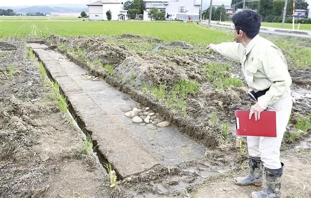 タイトル:奈良時代の大型寺院か 柱の痕跡「集石遺構」出土 上越市教委「本長者原廃寺」で現地見学