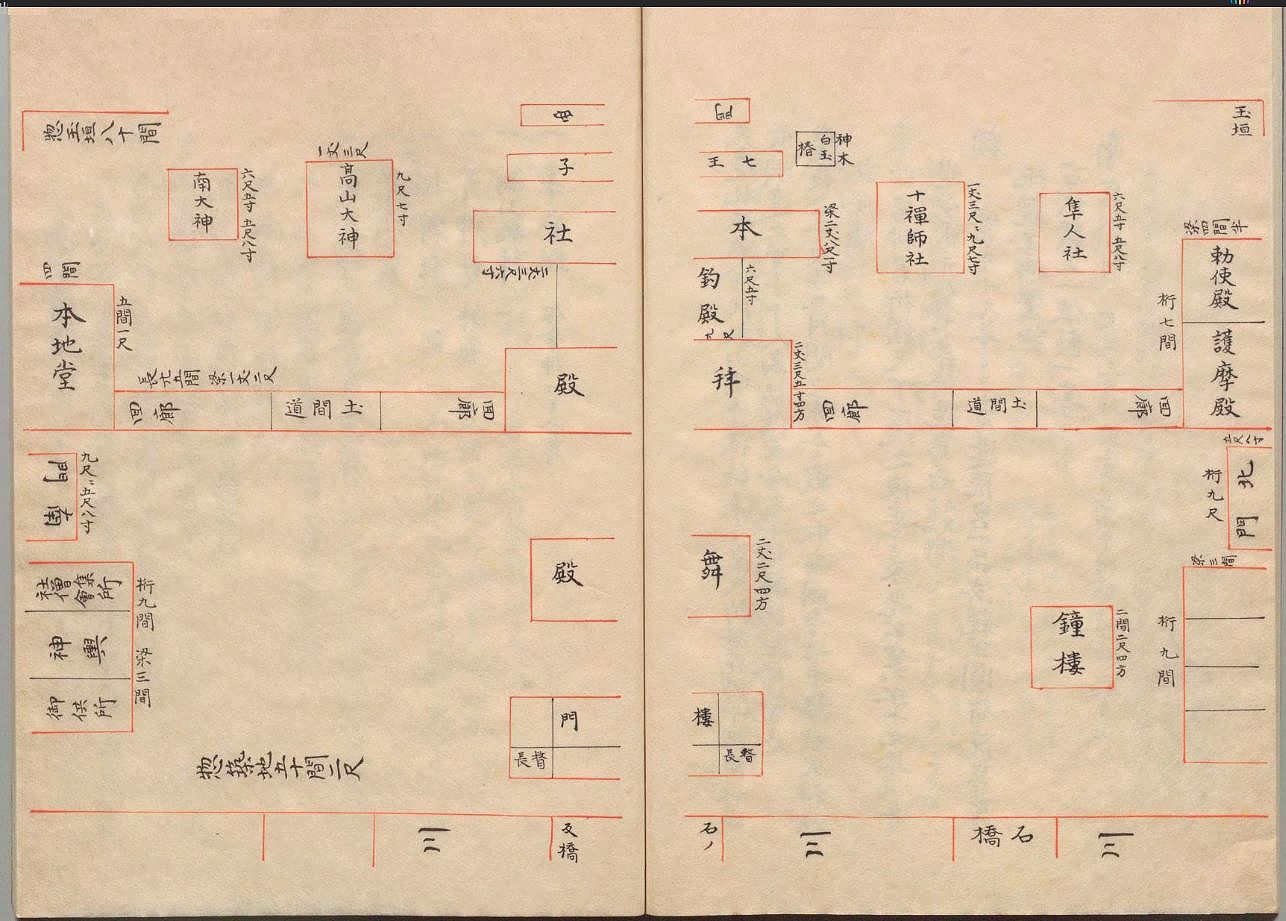 ・「国立歴史民俗博物館資料調査報告 情報資料研究部 社寺境内図資料集成1 東北・関東・中部・中国・四国・九州」国立歴史民俗博物館、2001(口絵と本文)