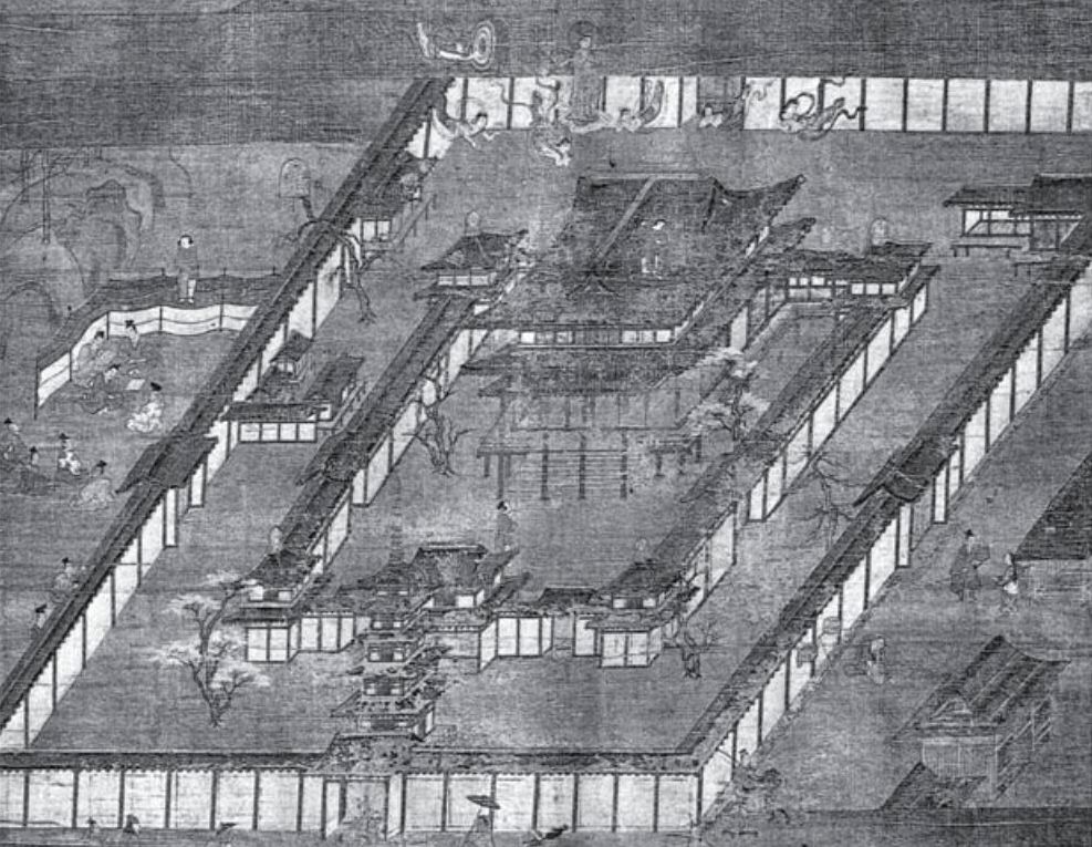 七間檜皮葺講堂1宇、南檜皮葺二重金堂1宇、北二重檜皮葺金堂