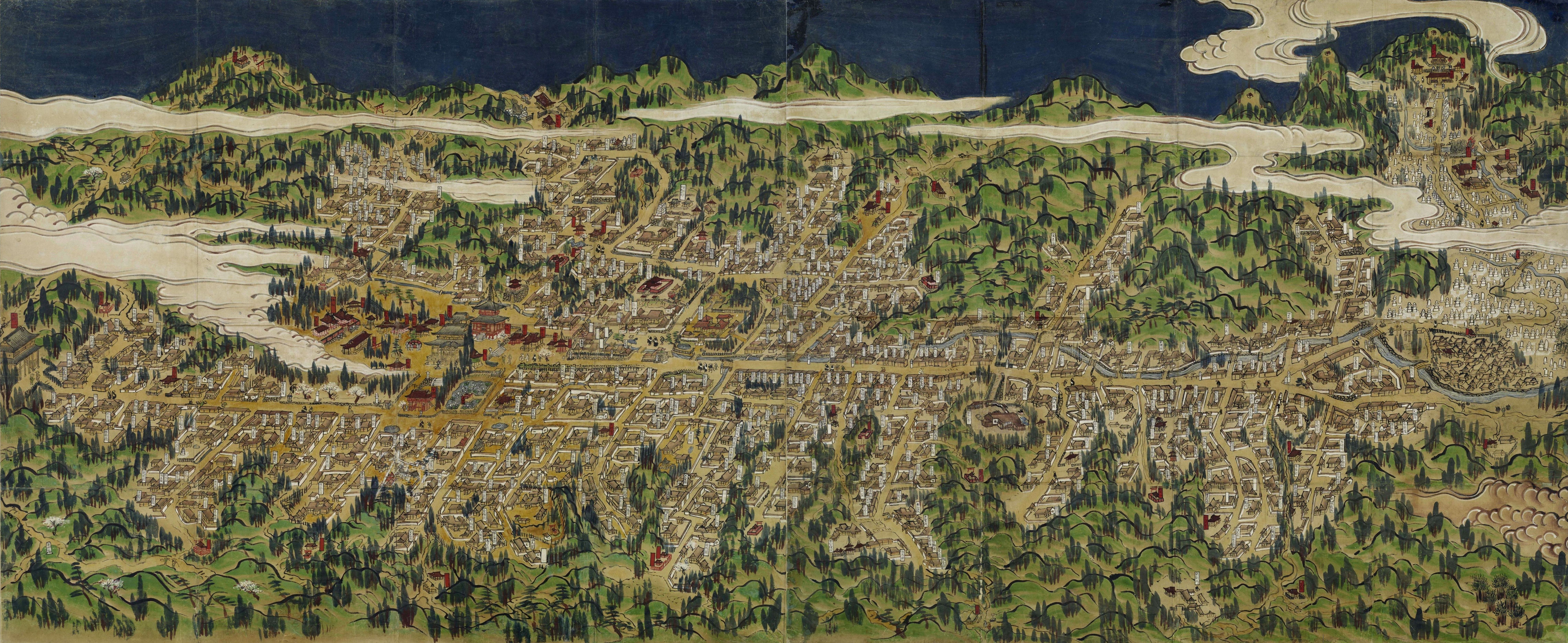 本屏風は描かれた伽藍から、13世紀末頃の景観であると推定され、様式からもその時期のものと肯定される。