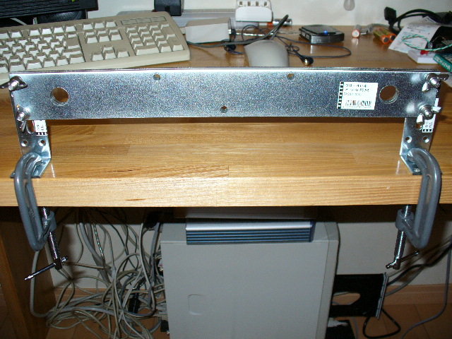 すこし頑丈なCクランプもあわせて購入しかなり一回り大きいけど手抜きな工作台を作成した。ネジをすべてステンレスにしても合計で2000円位で完成。もう2個位Cクランプの一回り小さい奴を用意して押さえたほうがよさそうだ。