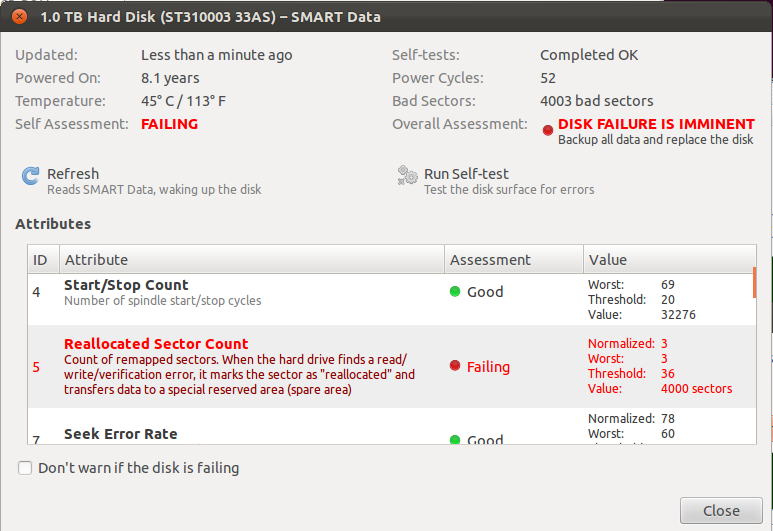 このHDDは我が家で悪名の高いSeagateの1TBだった。