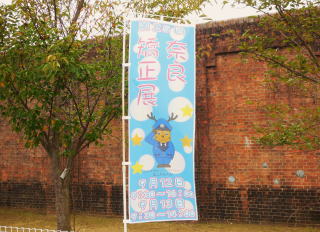 ふと見ると、周囲には矯正展告知ののぼりが幾つも立ててあり、刑務官の制服を着た鹿が敬礼しています。