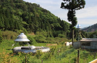 そんな山道を冷や汗をかきつつ6~7kmも進んだ頃、ああっ!右手の山の中にUFOが(笑)!あまりに唐