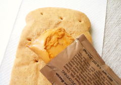 MRE定番のパンであります。枯れ草っぽい香りもあり、まるで飼葉を食べている馬にでもなった気分ですが、