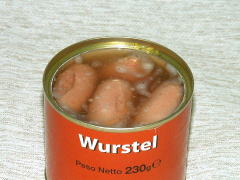続いての缶詰は『Wurstel』。おそらくヴルスト(ソーセージ)の事でしょうか。振るとチャポチャポと水