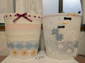 左は施設への指導作品 右は手作りマスク キルト座布団 |