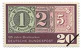 20Pfennig トゥルン・ウント・タクシスが発行した3種類の切手で発行125年を表す |