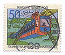 1901年3月1日(金)にブッパータールのモノレールが開設されてから75年を迎えるのを記念して発行されました。モノレールは、12メートルの高さを走り、コースの全長は13.3kmあります。