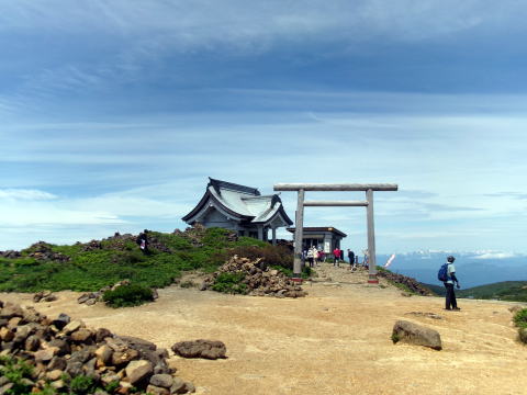 | ここから50分程度で熊野岳頂上に到着。ゆっくり、ゆったりの山歩きだ。熊野神社の境内にある避難小屋で昼食。13:00頃には駐車場レストハウスに戻ってきた。この日は早めに仙台に戻ってゆっくりした。 |
