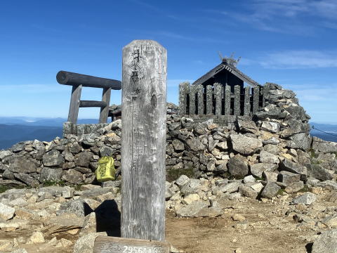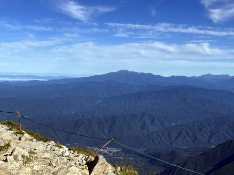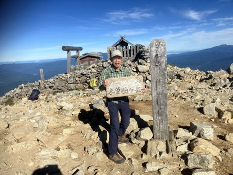| 360度の展望、北アルプス、南アルプス、八ヶ岳の遠望。富士山も目に入る。近くには御嶽山、乗鞍岳が。 |