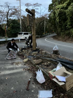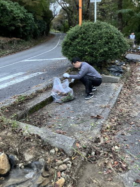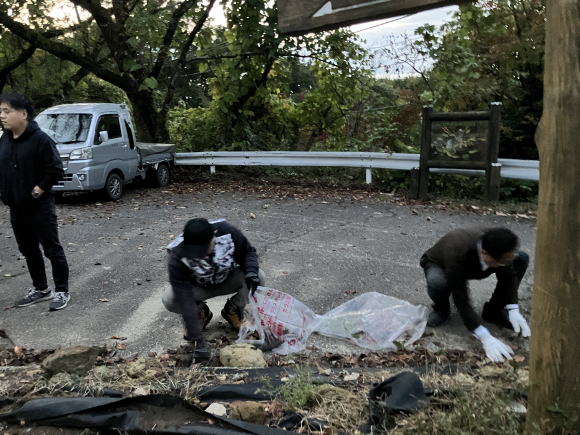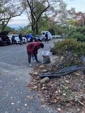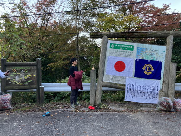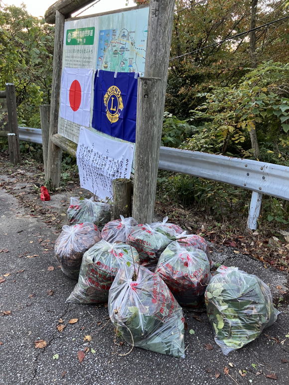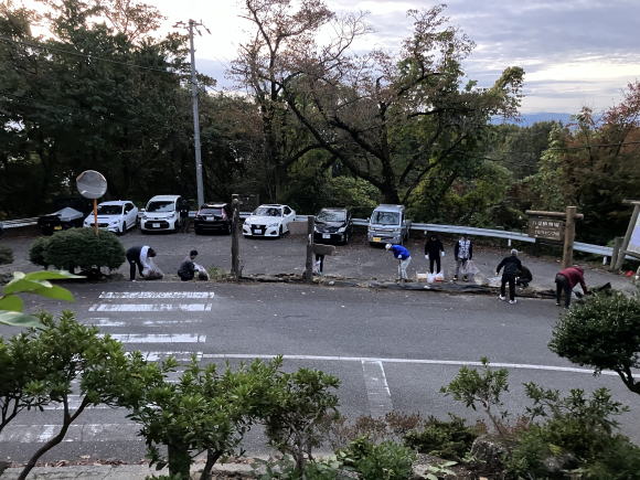 第261回例会 清掃活動 場所:二上山大伴家持像前 会長L.蓑健太郎ゴング