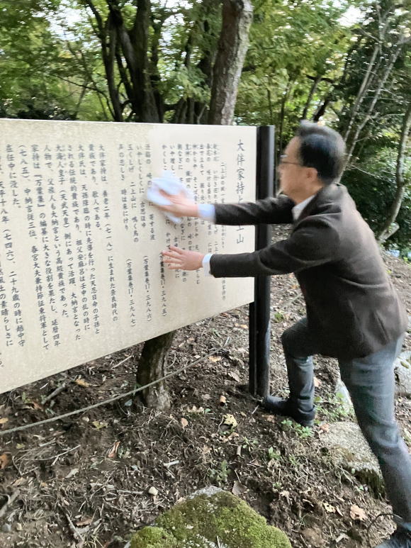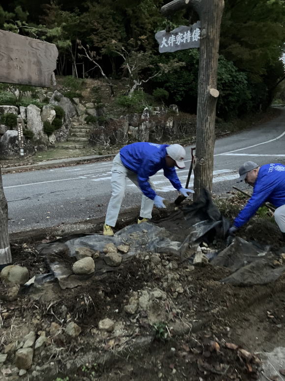 大伴家持像から駐車場(作業風景)
