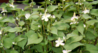 ドクダミの茂み。夜、月明りで白い花が目立つ
