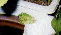 産卵と卵塊作製作業。雌のお腹の大きさに注目。1993-6-11、18:57
