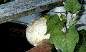 成ったばかりのお父さんガエルも、泡のボール作りを一生懸命手伝ってくれました。やがて生まれてくるオタマジャクシ達も、水が無くなることを心配しなくてよさそうです。