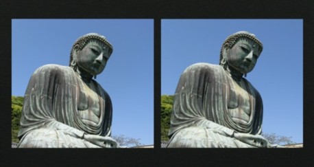 立体写真のしくみは、被写体に対して左右のそれぞれ違う角度から撮影された二枚の写真を、一つの写真として捉えることにより立体視されます。