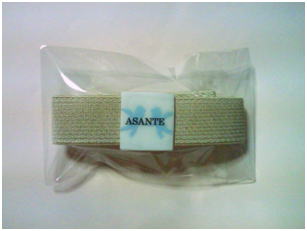 2.”ASANTE”のマークが手首の真ん中にくるように調整してください。