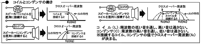 コンデンサとコイルの働きのところで述べたことを利用すれば、簡単にマルチウェイ・スピーカーを作ることが出来ます。