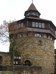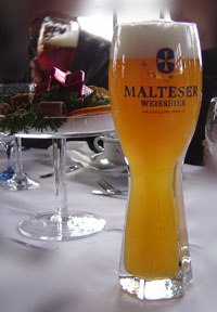 城壁の見張り台がレストランになっていてここでランチタイム。 | ドイツ最初のビール! ヴァイツェンはおいしかった〜♪ |