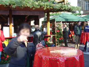 | クリスマスマーケット名物グリュウワイン。 スパイスが効いた甘めのホットワインです。 昼まっから・・・ |