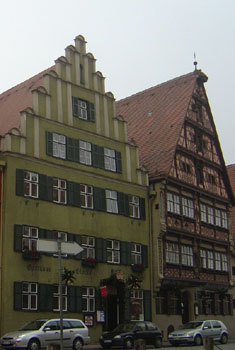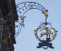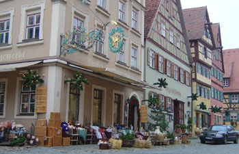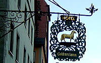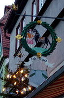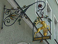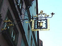 | ローテンブルグノ風物のひとつ、すかし細工の看板はお店の特徴を現すデザインになっていて楽しいものでした。 | ||
