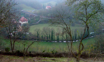 朝8時まだ夜が明けきらない中ホテル出発。9時過ぎになってバスの車窓から風景を眺めることが出来、ヨーロッパの冬の夜が長いことを実感しました。 ガイドさんの説明で高速道路の建設は戦争時の滑走路をイメージしてヒットラーが初めて構想、実現させたものであることを知り、あの悲惨な戦争の歴史を背負った国を訪れているということに急に厳粛な気分を感じました。 |