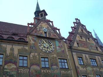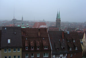 | バスにて現地ガイドさんの説明を受けながら市内観光。 ここまで来て「ニュルンベルグ裁判」の当地であることに思い至るうかつさでした。 車窓より裁判所を眺めながら映画「戦場のピアニスト」で見た悲惨なシーン、戦渦に壊滅的ダメージを受けた町の情景などがが思い出され暫し複雑な思いにとらわれました。 |