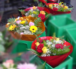![]() 買って帰りたいような可愛いアレンジメントを 並べていた花屋さん 果物屋さんもカラフルさを競って… |