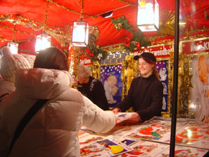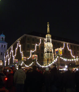 | 教会を出ると外はすっかり夜の風景でマーケットは一段と賑わっていました。 コンサートで一緒になったツアーの親娘さんと連れ立って少しお買い物をしながらホテルへ戻り、ドイツ最後の一日もおしまい・・・ |