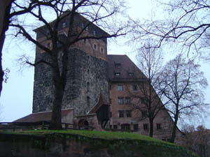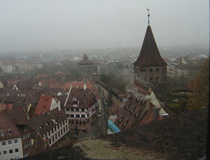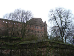 | 旧市街地を見渡せるカイザーブルグ城を見学。 11〜16世紀の間王侯貴族の居城だったとのことでいささか厳めしい名残が漂よっていました。 |