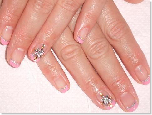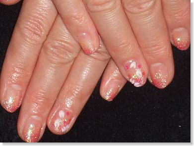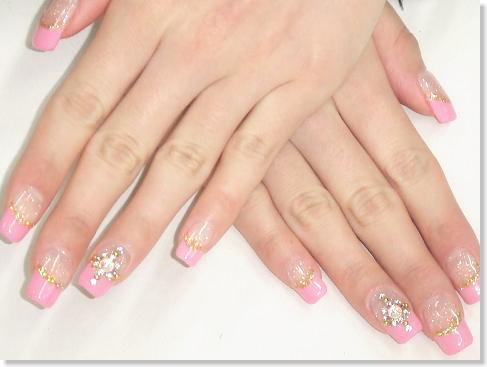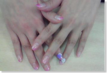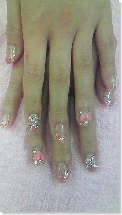![]() ピンクのポリッシュとラメのグラデーション ポイントにハートの3Dとラインストーンをおきました |