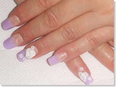 パステルなパープルのグラデーションスカルプバラの3Dとストーンものせました |