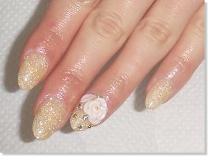 結婚式を挙げる友人です!ラメジェルにバラの3Dを全部の指にのせました |
