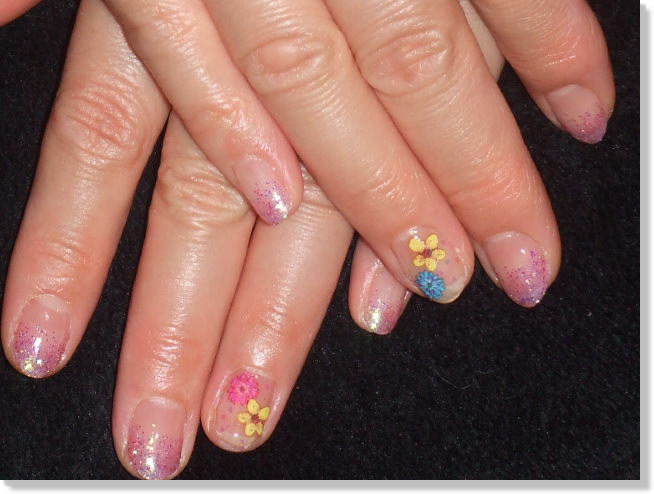 ![]() ピンクフレンチに2本ずつ 押し花にしました |