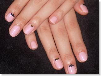![]() ベビーピンクの単色ジェル ポイントでゴールドとブラックの ストーンを置きました |