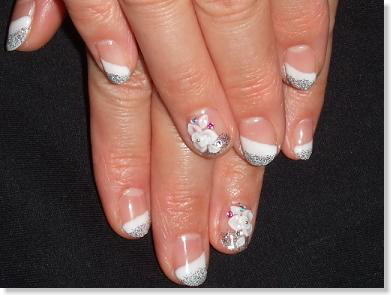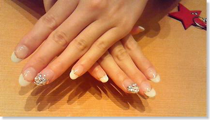 ![]() ブライダル用に白フレンチジェルに バラの3D・ストーンを散りばめました |