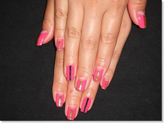 ポリッシュのピンクを塗り、ゴールドのラインをプラス |