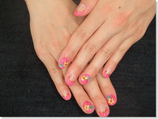 ![]() ピンクジェルのフレンチに 押し花もいれました |