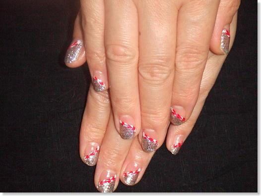 ![]() 白の斜めフレンチ 境目は赤ラメでぼかしました |