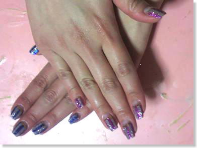 ![]() ピンクと紫のプッチ風に シルバーのラインをひきました |