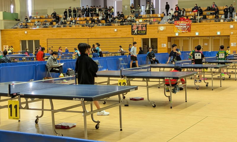 2月27日(土)に北九州市立総合体育館で福岡選手権大会が開催されました。わがチームには、一昨年より北九州から毎日練習に通ってきているO君がいます。福岡県在住というわけで当然福岡の試合に出ることになります。この大会は全日本のホカバのシードも兼ねているということで、応援に駆けつけました。小学生から中学生までのそれぞれのカテゴリー別に開催された本大会ですが、福岡県の選手を見るいい機会になりました。福岡県は卓球人口もさることながら力のある選手が多く勉強になります。九州大会ではおそらくわがチームの子どもと対戦する選手もいます。気にならないと言えば嘘になります。さてO君、準々決勝では東アジアホープスの予選で負けた相手と対戦。今回は寄せつけず圧勝!しかし準決勝では得意のパターンに持ち込めず競り負けました。左対策等、課題が浮き彫りになった試合になりました。全日本予選を見据えて、監督ともどもまた頑張らねばなりません。 |
