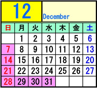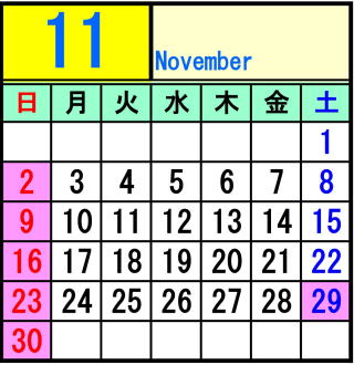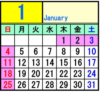ピンク色は休校日です