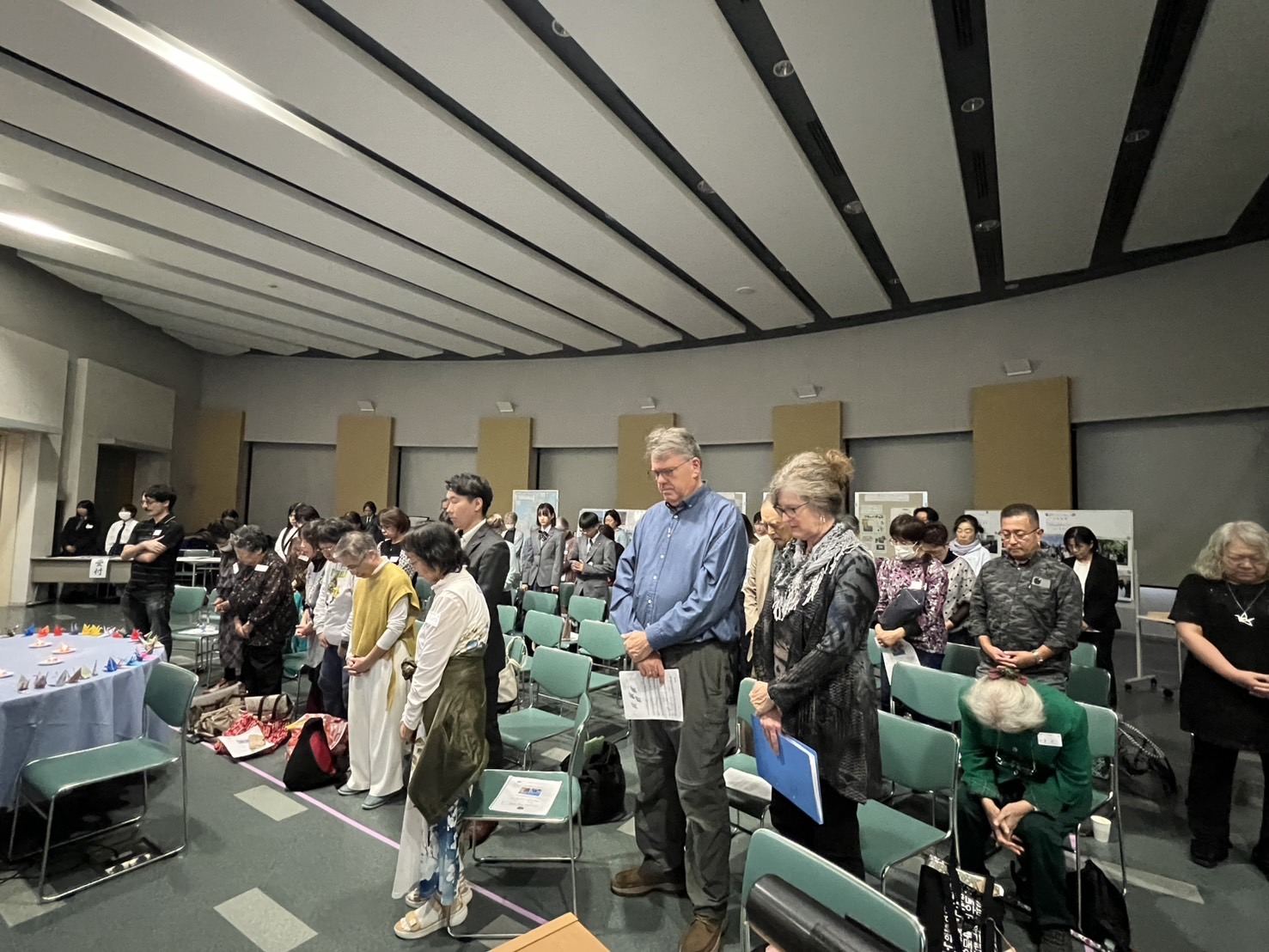 ➁ コベントリー爆撃の話を聞いた後、黙祷。 |